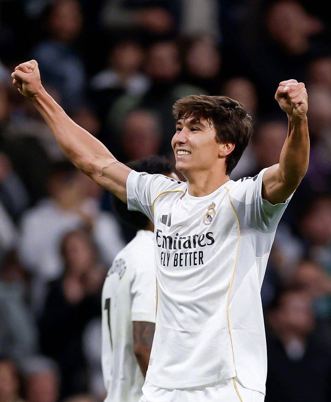 这一世界波将比分扩大为2-0,贡萨洛·加西亚完成了梅开二度。 伯纳乌的球迷们起立为这位小将的精彩表现鼓掌,镜头扫过看台,可以看到因伤缺阵的姆巴佩也在为队友的出色表现点头称赞。